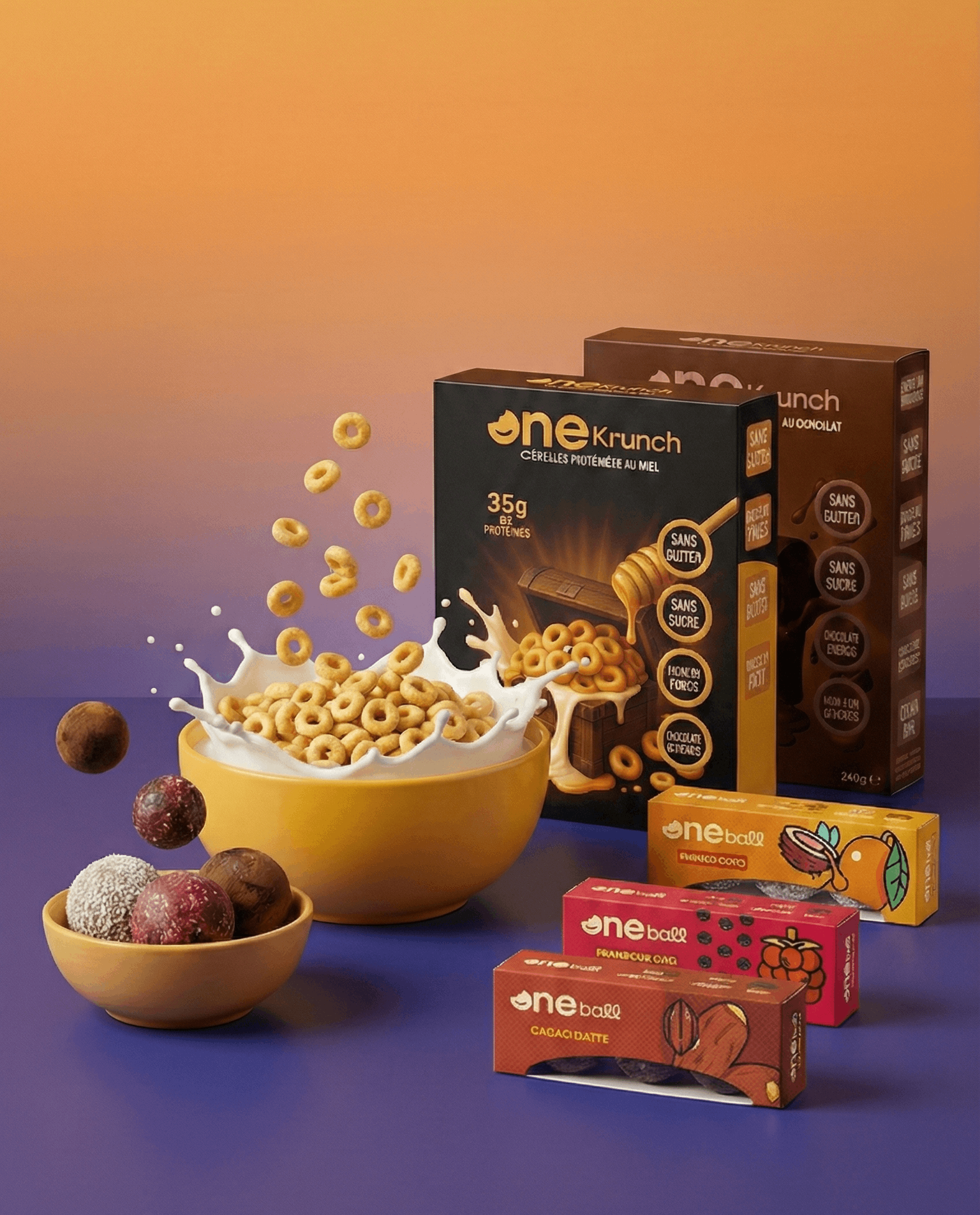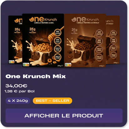 Des céréales protéinées ? Pour démarrer ta journée sur le bon pied ou en snack plaisir, avec One krunch tes macros n'ont qu'à bien se tenir.