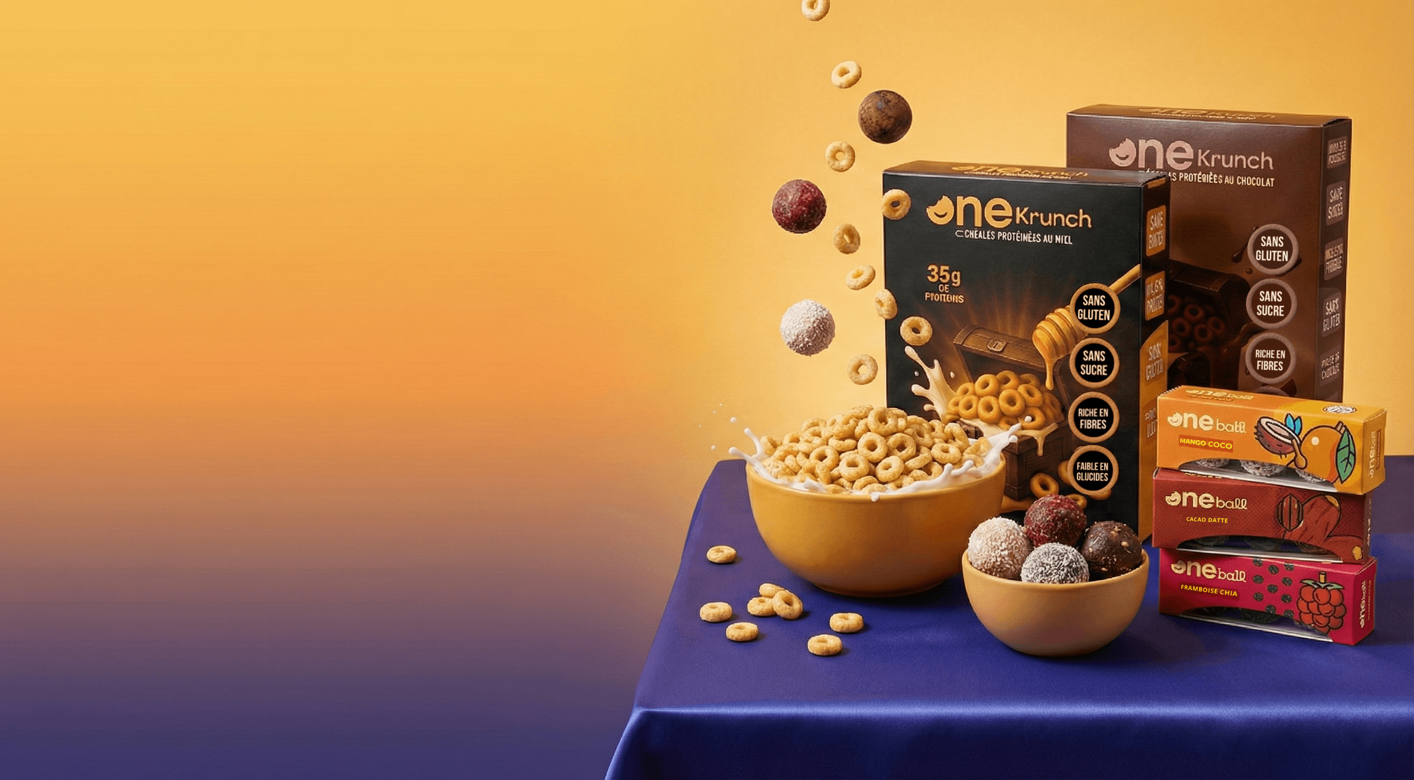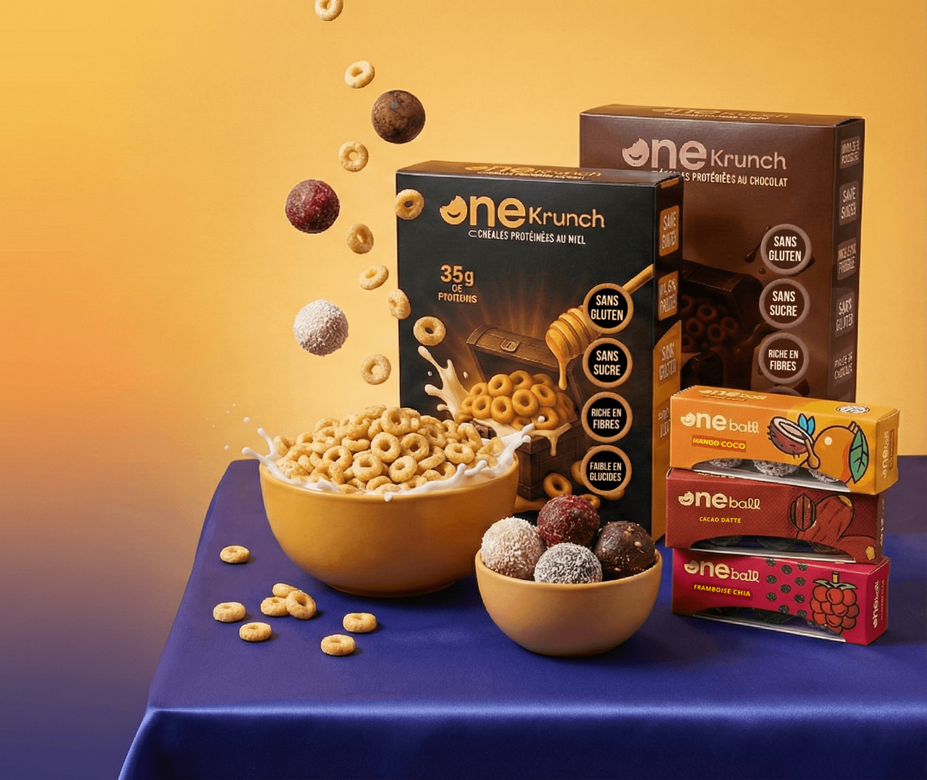 OneKrunch, c’est des céréales ultra gourmandes mais pensées comme un vrai snack fonctionnel : riches en protéines végétales, très peu sucrées, avec un Nutri-Score A. En gros, le plaisir d’un bol de céréales “enfant”, avec une recette d’adulte qui fait attention à sa santé.