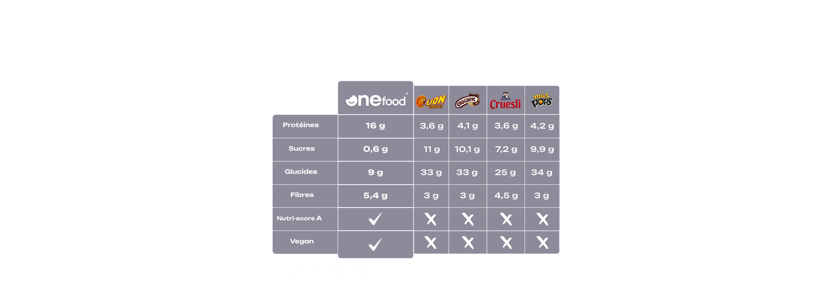 One Krunch est certifié Nutri - Score A. On a passé 5 ans à élaborer une recette ultra - protéinée, saine et vraiment délicieuse !
