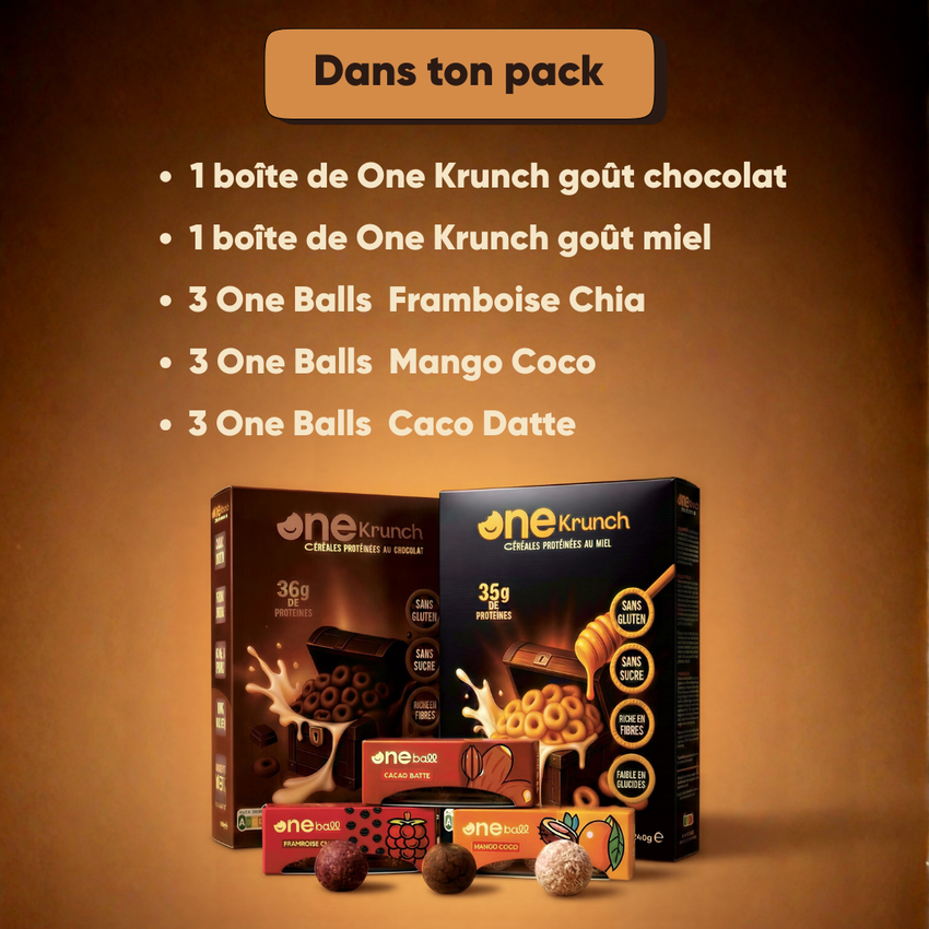 Le pack découverte c'est un mix idéal de toute la gamme de produits One Food à petit prix.