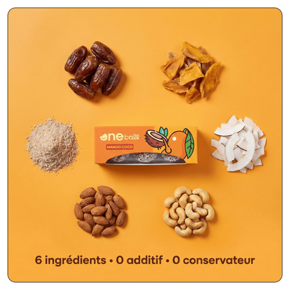 One Ball, c’est du vrai food : dattes, fruits, noix, graines… pas une liste de 40 trucs chelous.